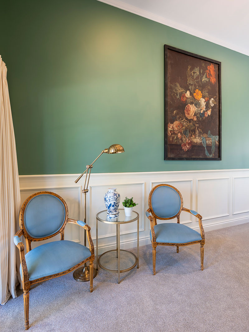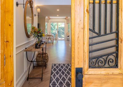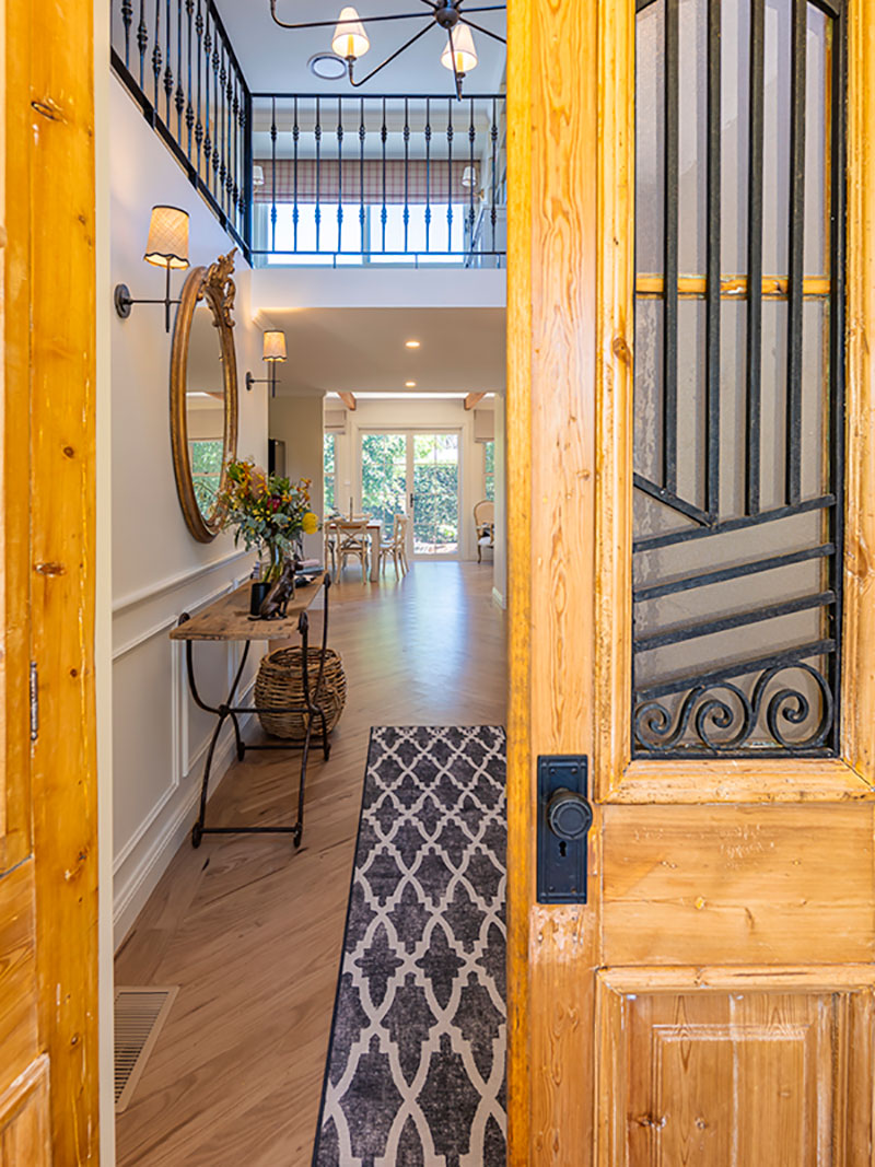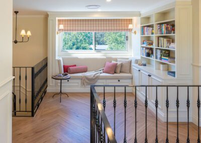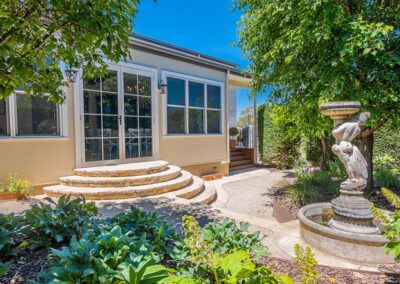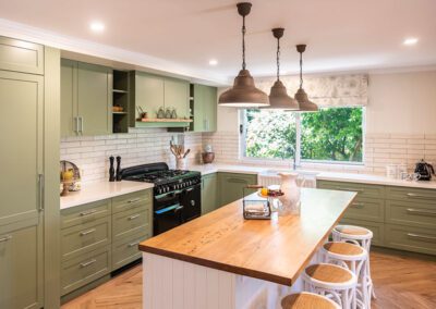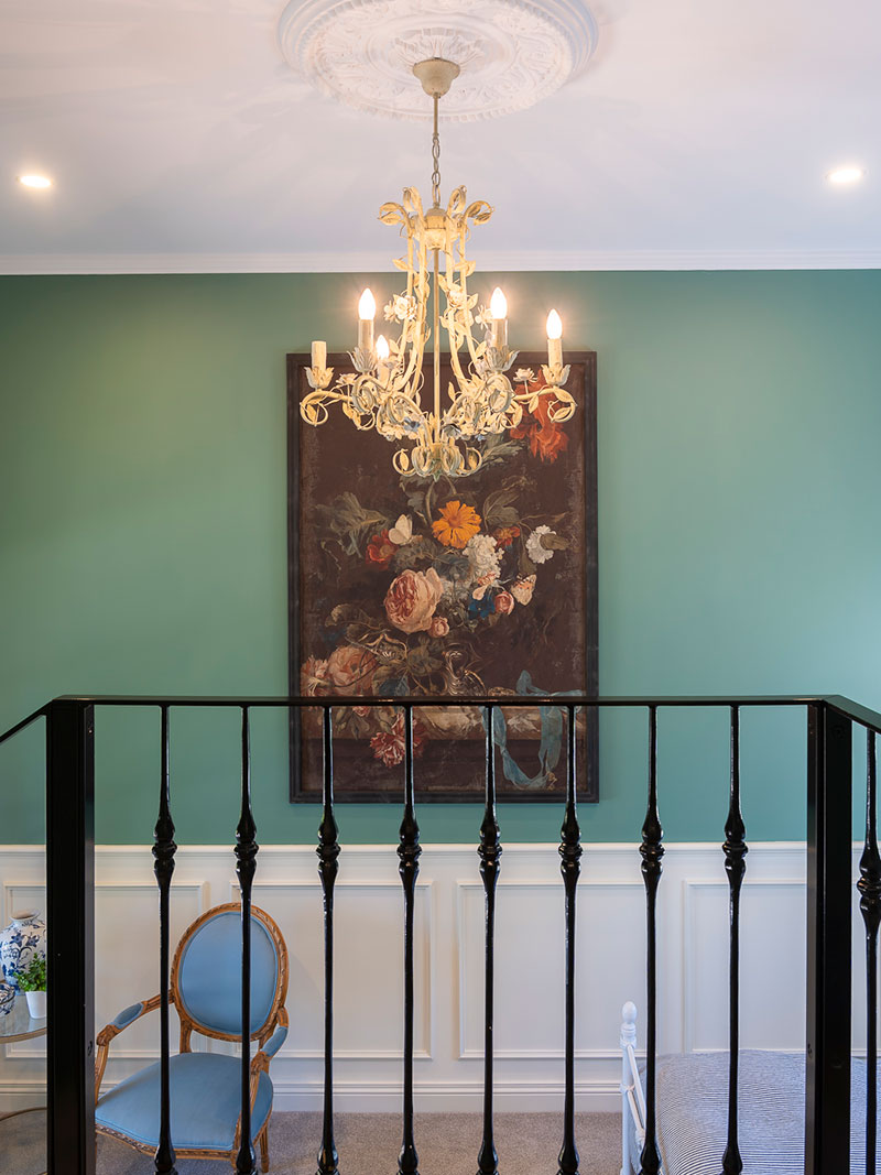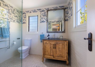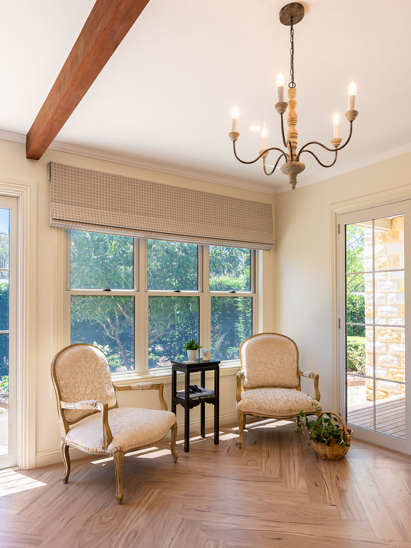 The Interior – The owners wanted to preserve the home’s European character while introducing comfort and durability suited to contemporary use. I for Style’s creation of a layered interior with a French- Country influence included a fluted butlers sink, stunning wainscoting and wall mouldings on the library joinery and the wall behind the main bedroom bed, antique and salvaged pieces throughout. All these elements add depth, warmth and authenticity.